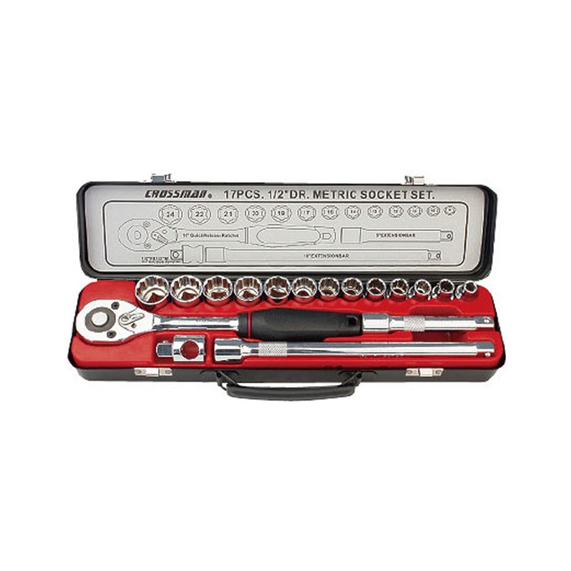 Descripción LLAVE DADO CROSSMAN # 99-047W 1/2 DR S 8-24 MM 17 PZ. 4 Accesorios: 1 Chicharra 10” exp.rápida 1 Adaptador /2"Fx1/2"M 1 Extensión 5” 1 Extensión 10" Caja plástica 13 Dados S: 8 - 10 - 11- 12 - 13- 14 - 15 - 17 - 19 - 20 - 21 - 22 - 24 mm