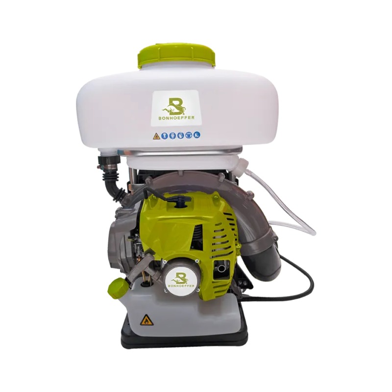 Descripción FUMIGADOR BONHOEFFER A GASOLINA 20 LTS. MOTOR 4HP # BON-P-MD52 Arranque Manual Incluye : Tubo exterior, Nosel, Contenedor combustible, Kit de herramientas, Plumero Garantia: 15 meses CILINDRADA MOTOR: 52 cm3 POTENCIA (CV): 4 CV VELOCIDAD MÁXIMA: 6500 RPM BUJIA DE ENCENDIDO: NGK BPMR7A CAPACIDAD TANQUE: 14 lt CONSUMO COMBUST: 491 g/kWh TIPO COMBUSTIBLE: Gasolina 2.0 Lt PESO: 12 kgs PROPORCIÓN MEZCLA: 50:1 ALCANCE HORIZ MÁX: 20 m ALCANCE VERT MAX: 18 m VOLUMEN DEPÓSITO: 20 lt TAMAÑO GOTA ALTO: 100 μm TAMAÑO GOTA BAJO: 60μm SALIDA DE LIQUIDO: 0~7 lt/min