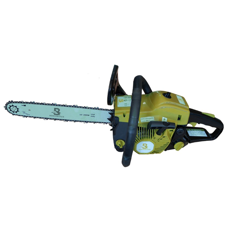 MOTOSIERRA BONHOEFFER A GASOLINA 2,1 HP BARRA 16" # BON-P-CS40 Lubricación de cadena automática ajustable Incluye kit de herramientas y botella mezcla combustible 2 lts MOTOR: 2,1 HP BARRA GUÍA: 16" Super calidad CADENA DE SIERRA: 3/8" LP Cadena CAPAC. TANQUE COMBUSTIBLE: 410 ml CAPAC.TANQUE ACEITE MOTOR: 240 ml MAXIMA REVOLUCIÓN: 12100 /min RELACIÓN MEZCLA ACEITE/GASOL: 2T: 40:1