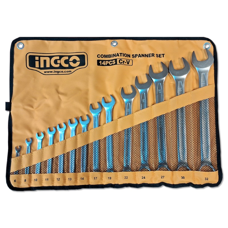 Descripción LLAVE PUNTA Y CORONA INGCO 6-32 MM JGO. 14 PIEZAS # HKSPA1144 Llaves doble punta-corona 14pcs. Medidas: 6, 8, 10, 11, 12, 13, 14, 17, 19, 22, 24, 27, 30 y 32mm. Acabado pulido, con cubierta de lona para fácil transporte.