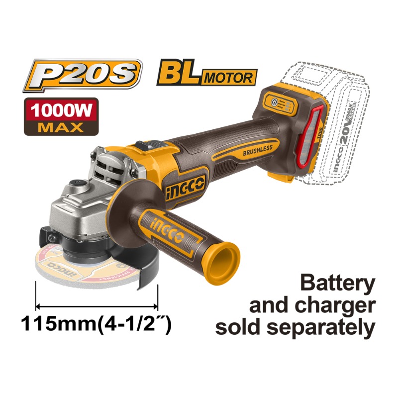 Descripción ESMERIL ANGULAR INGCO INALAMBRICO 20V SIN BATERIA Y SIN CARGADOR # CAGLI27153 (C) POTENCIA: 20V VELOCIDAD SIN CARGA: 3000/6000/9000rpm DIAMETRO DE DISCO: 115 mm ROSCA DEL HUSILLO: M14 Disco, Batería y cargador NO INCLUIDOS (se venden por separado)