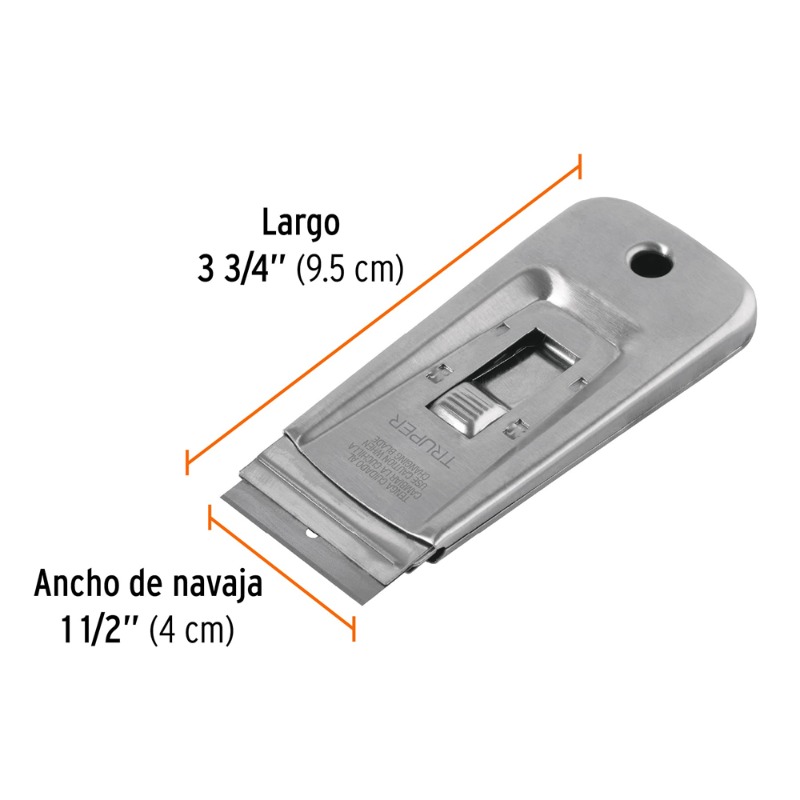 RASPADOR PINTURA TRUPER HOJA 1.1/2" C/5 HOJAS # RASP-3 (101100) Cuchilla de acero SK5, 2X más durable, retráctil con seguro de mayor fijación que evita el deslizamiento. Elimina pegamento, pintura, silicón y cemento de superficies lisas como vidrio, azulejo, paredes y metal.