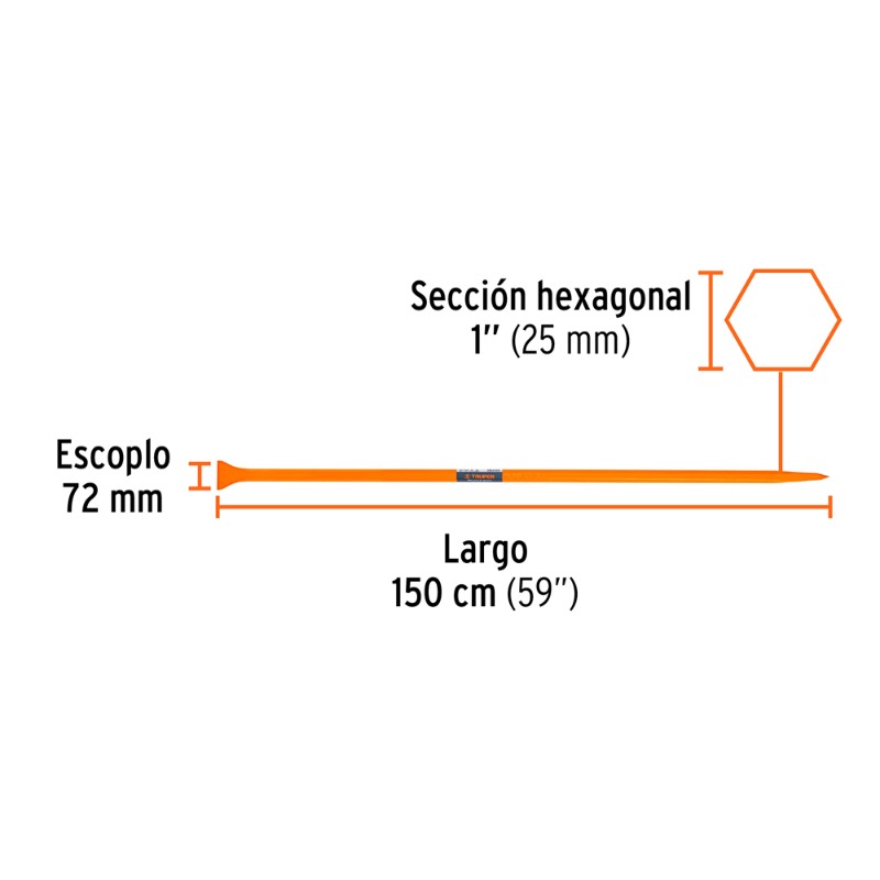 Descripción BARRETA DE PUNTA TRUPER 1" X 150 CM. ESCOPLO 72 MM # BAP-150 (10756) Fabricada de acero con doble tratamiento térmico. Para perforar superficies duras de tierra, piedra o concreto y demoler, romper o cortar raíces de árboles.