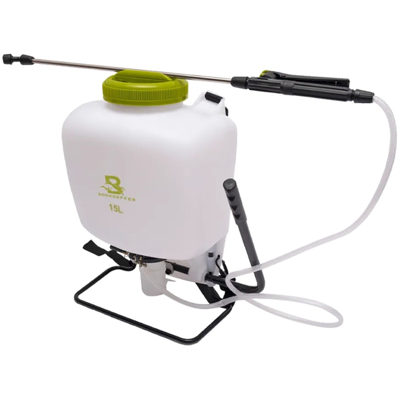 Descripción FUMIGADOR MANUAL BONHOEFFER 15 LTS. BOMBA PLASTICA # BON-P-MS15L-SOL Capacidad : 15 Litros (CON BIELA ALUMINIO) Operación : Manual Tipo de bomba : plástico Presión de trabajo : 0,3-0,4MPA